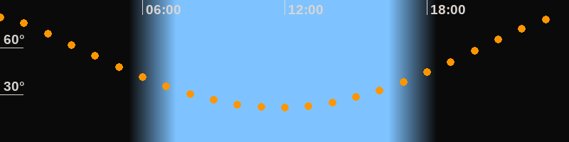 | Höchster Stand (Kulmination) | 23:44 Uhr (h = 79,4°) |