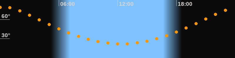 | Höchster Stand (Kulmination) | 00:22 Uhr (h = 79,4°) |