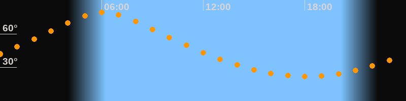 | Höchster Stand (Kulmination) | 06:06 Uhr (h = 79,4°) |