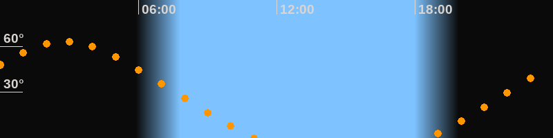 | Untergang | 11:04 Uhr im Nordwesten (αAz = 310,8°) |