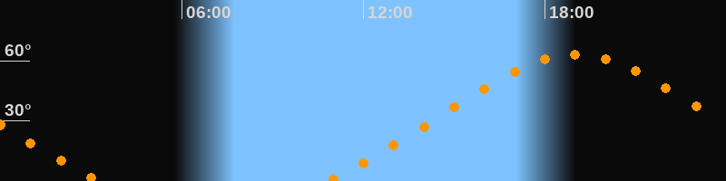 Höchster Stand (Kulmination)19:01 Uhr (h = 63,2°)