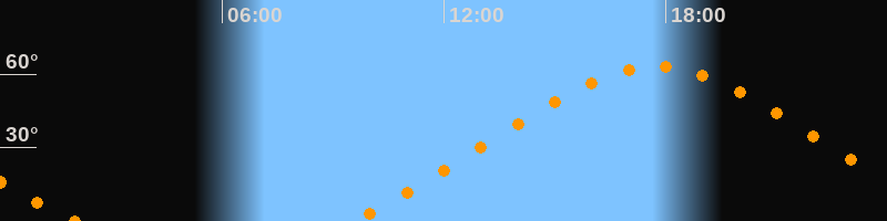 Höchster Stand (Kulmination)17:44 Uhr (h = 63,2°)