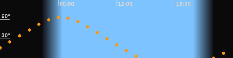 | Höchster Stand (Kulmination) | 06:15 Uhr (h = 63,2°) |