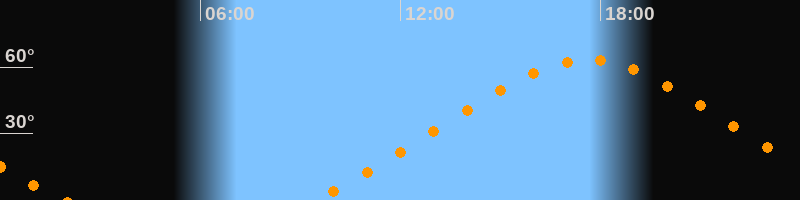 | Höchster Stand (Kulmination) | 17:36 Uhr (h = 63,2°) |