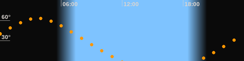 | Untergang | 11:55 Uhr im Nordwesten (αAz = 310,8°) |