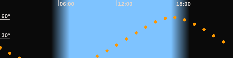 | Höchster Stand (Kulmination) | 17:45 Uhr (h = 63,2°) |