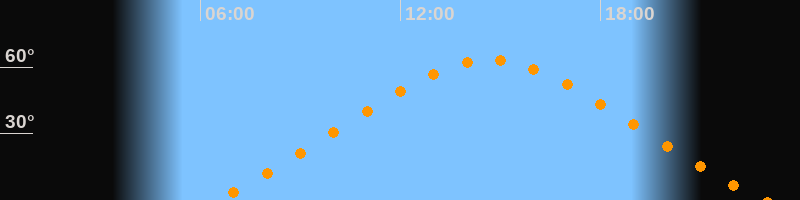 | Höchster Stand (Kulmination) | 14:40 Uhr (h = 63,2°) |