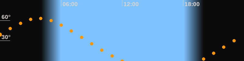 | Untergang | 12:02 Uhr im Nordwesten (αAz = 310,8°) |