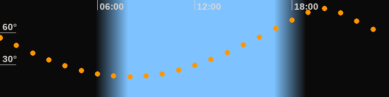 | Höchster Stand (Kulmination) | 19:56 Uhr (h = 82,5°) |