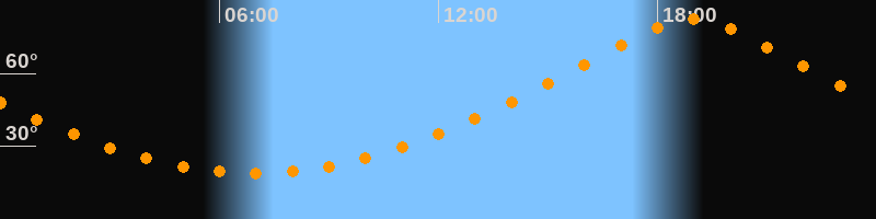 | Höchster Stand (Kulmination) | 18:57 Uhr (h = 82,5°) |