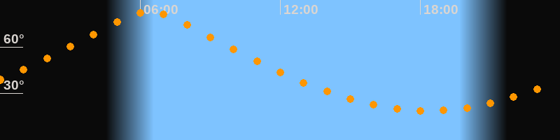 | Höchster Stand (Kulmination) | 06:23 Uhr (h = 82,5°) |