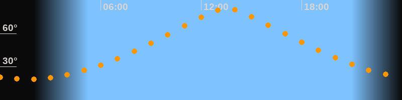 | Höchster Stand (Kulmination) | 13:32 Uhr (h = 82,5°) |