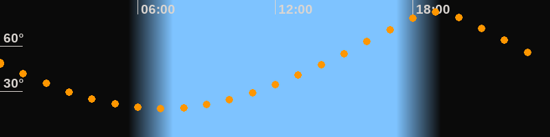 | Höchster Stand (Kulmination) | 19:02 Uhr (h = 82,5°) |