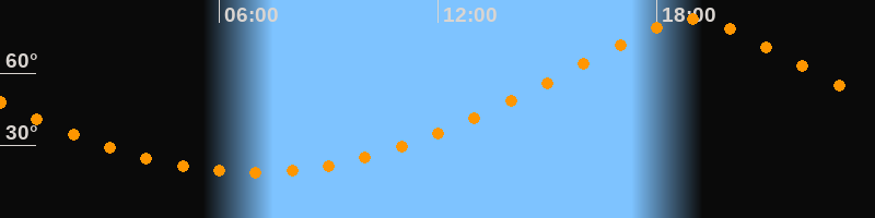 | Höchster Stand (Kulmination) | 18:56 Uhr (h = 82,5°) |