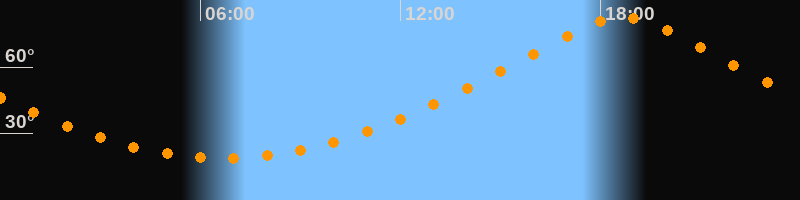 | Höchster Stand (Kulmination) | 18:41 Uhr (h = 82,5°) |