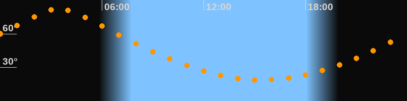 | Höchster Stand (Kulmination) | 03:27 Uhr (h = 82,5°) |