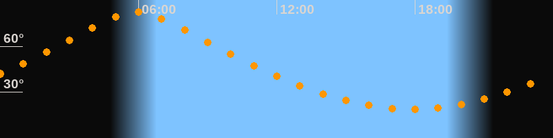 | Höchster Stand (Kulmination) | 05:54 Uhr (h = 82,5°) |