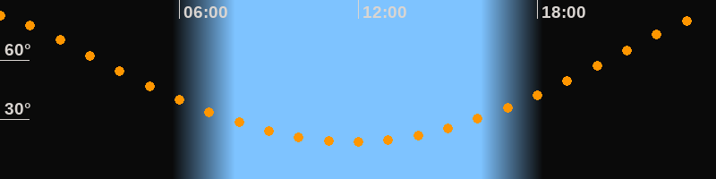 | Höchster Stand (Kulmination) | 23:47 Uhr (h = 82,5°) |