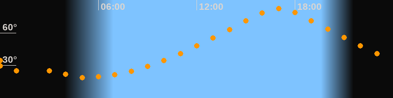 | Höchster Stand (Kulmination) | 17:00 Uhr (h = 82,5°) |