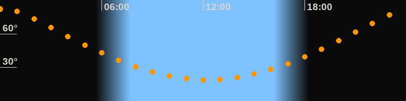 | Höchster Stand (Kulmination) | 00:13 Uhr (h = 82,5°) |