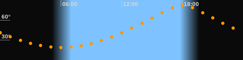 | Höchster Stand (Kulmination) | 18:00 Uhr (h = 82,5°) |