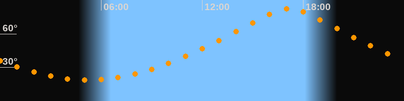 | Höchster Stand (Kulmination) | 17:10 Uhr (h = 82,5°) |