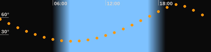 | Höchster Stand (Kulmination) | 20:08 Uhr (h = 82,5°) |