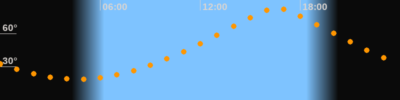 | Höchster Stand (Kulmination) | 16:36 Uhr (h = 82,5°) |