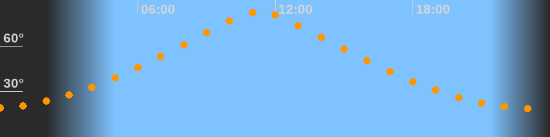 | Höchster Stand (Kulmination) | 11:18 Uhr (h = 82,5°) |