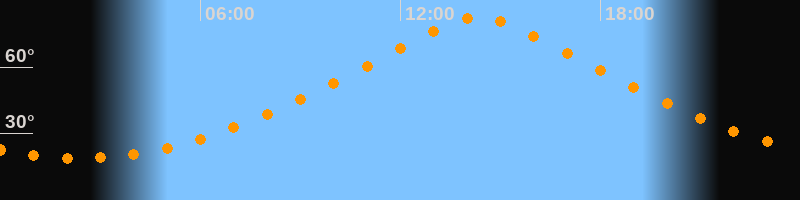 | Höchster Stand (Kulmination) | 14:22 Uhr (h = 82,5°) |