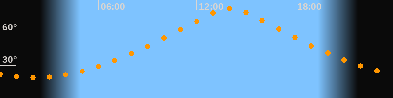 | Höchster Stand (Kulmination) | 14:02 Uhr (h = 82,5°) |