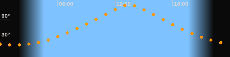 | Höchster Stand (Kulmination) | 13:27 Uhr (h = 82,5°) |