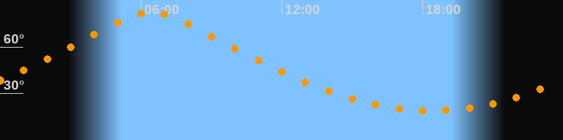 | Höchster Stand (Kulmination) | 06:26 Uhr (h = 82,5°) |