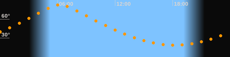 | Höchster Stand (Kulmination) | 06:14 Uhr (h = 82,5°) |