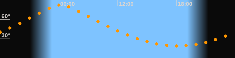 | Höchster Stand (Kulmination) | 06:10 Uhr (h = 82,5°) |