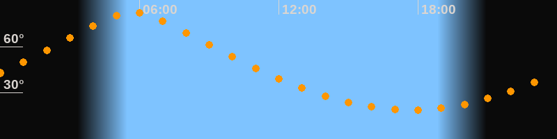 | Höchster Stand (Kulmination) | 05:43 Uhr (h = 82,5°) |
