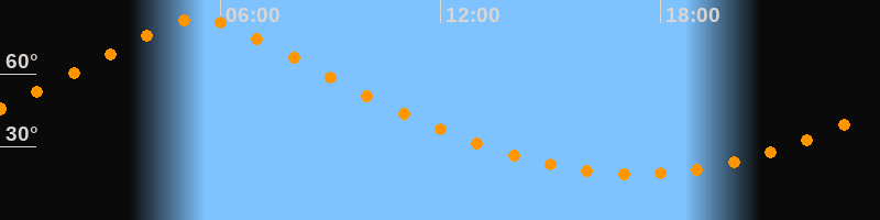 | Höchster Stand (Kulmination) | 05:23 Uhr (h = 82,5°) |