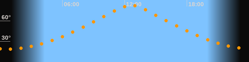 | Höchster Stand (Kulmination) | 12:36 Uhr (h = 82,5°) |