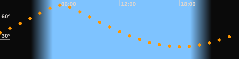 | Höchster Stand (Kulmination) | 06:07 Uhr (h = 82,5°) |
