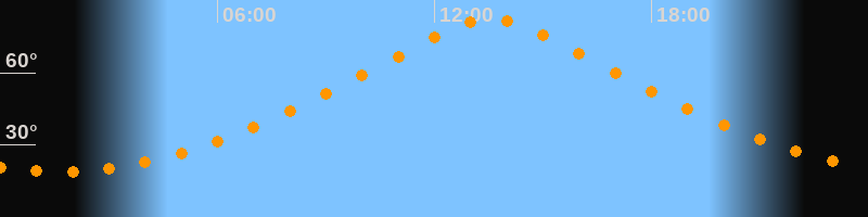 | Höchster Stand (Kulmination) | 13:33 Uhr (h = 82,5°) |