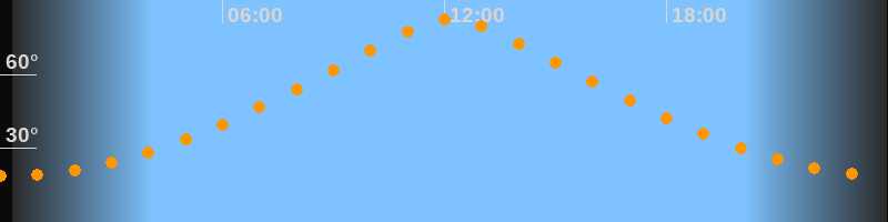 | Höchster Stand (Kulmination) | 12:11 Uhr (h = 82,5°) |