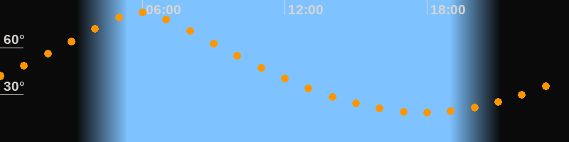 | Höchster Stand (Kulmination) | 05:54 Uhr (h = 82,5°) |