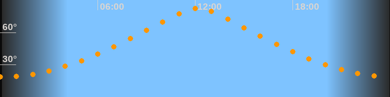 | Höchster Stand (Kulmination) | 12:09 Uhr (h = 82,5°) |