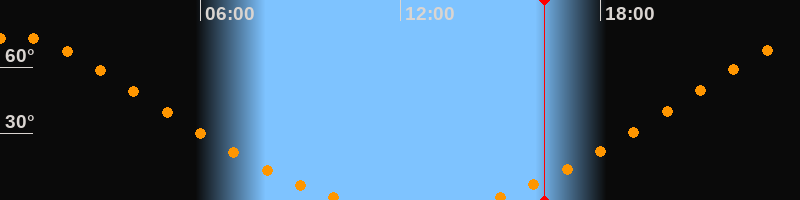 Aufgang14:33 Uhr im Nordosten (αAz = 25,4°)