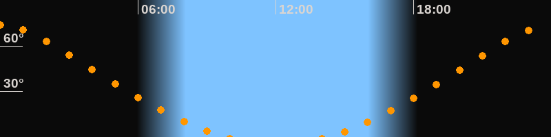 Höchster Stand (Kulmination)23:59 Uhr (h = 73,6°)