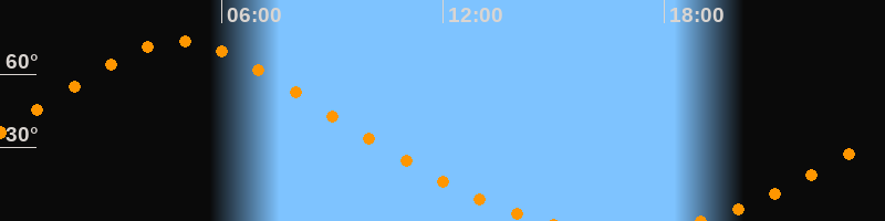 Aufgang18:55 Uhr im Nordosten (αAz = 25,4°)