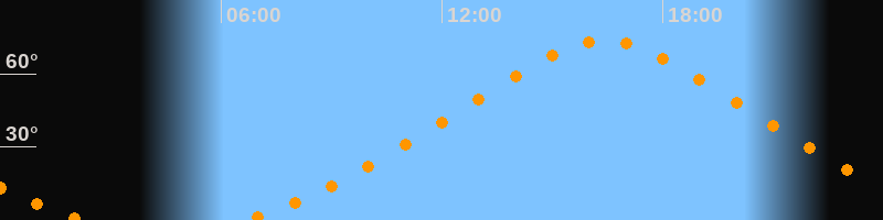 Höchster Stand (Kulmination)16:25 Uhr (h = 73,6°)