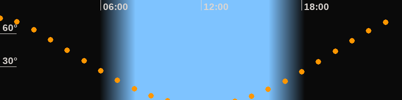 Höchster Stand (Kulmination)00:01 Uhr (h = 73,6°)