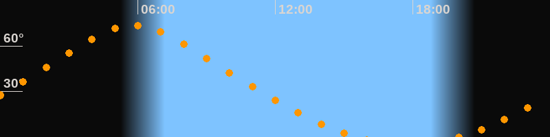 Höchster Stand (Kulmination)05:49 Uhr (h = 73,6°)