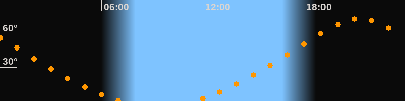 Höchster Stand (Kulmination)21:17 Uhr (h = 73,6°)